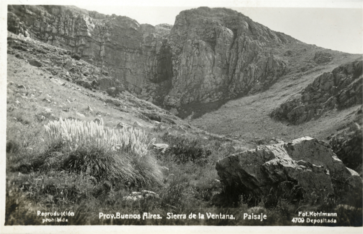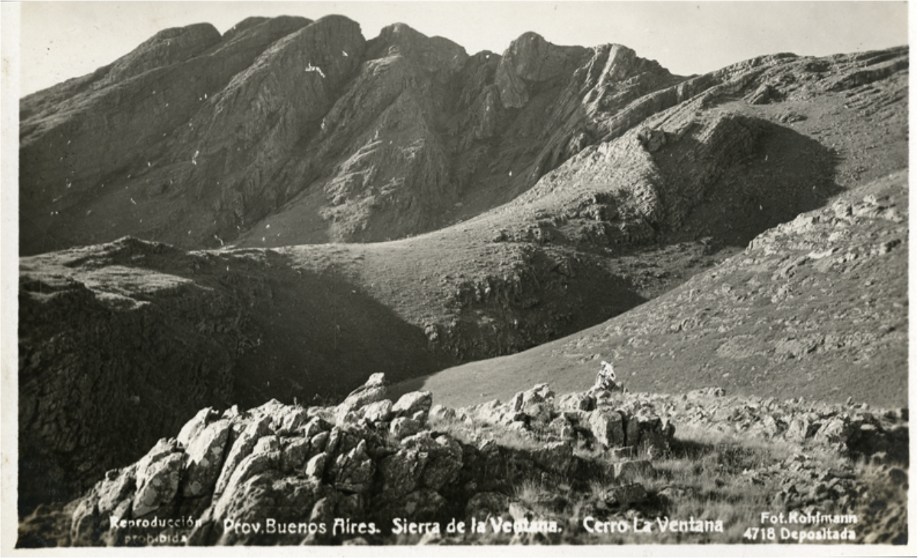 Federico Kohlmann fue un reconocido autor por sus postales y por sus viajes en el territorio Argentino, y entre sus recorridos documenta paisajes locales de Sierra de la Ventana y alrededores.